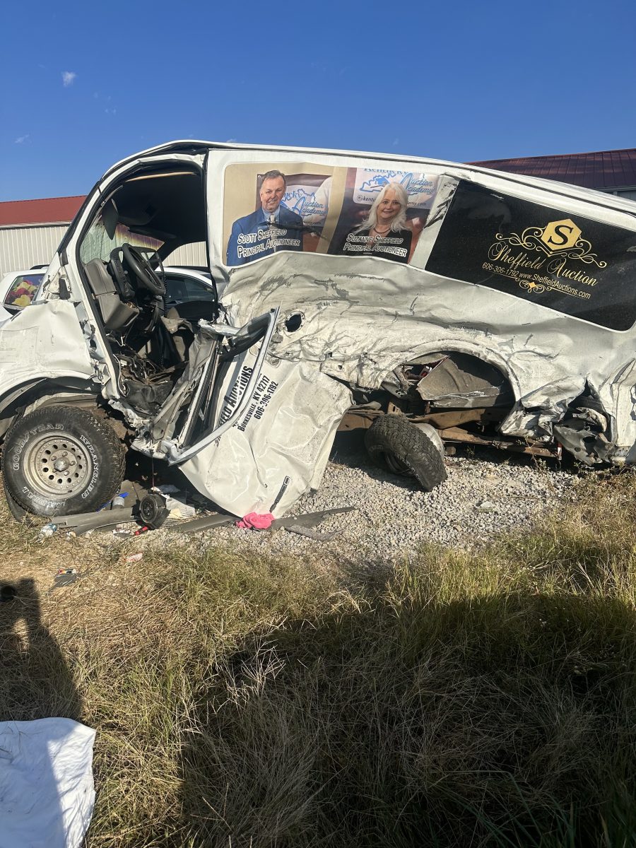 This is what’s left of the van Scott Sheffield had been driving when a man Sheffield said had only been released from jail that morning plowed into the side of his van while running from police. Scott gave special praise to deputy Lance Watson for climbing into the wreck and sitting with him while first responders cut him out of the vehicle.