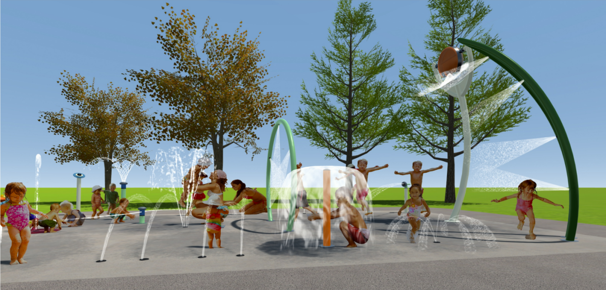 The bid is for all the water attractions and control equipment and a 20-foot x 30-foot concrete pad, where the water features would be installed, and a 5 foot perimeter of concrete, for containing overspray.  Rough design layout from Bluegrass Recreational Sales and Installation.