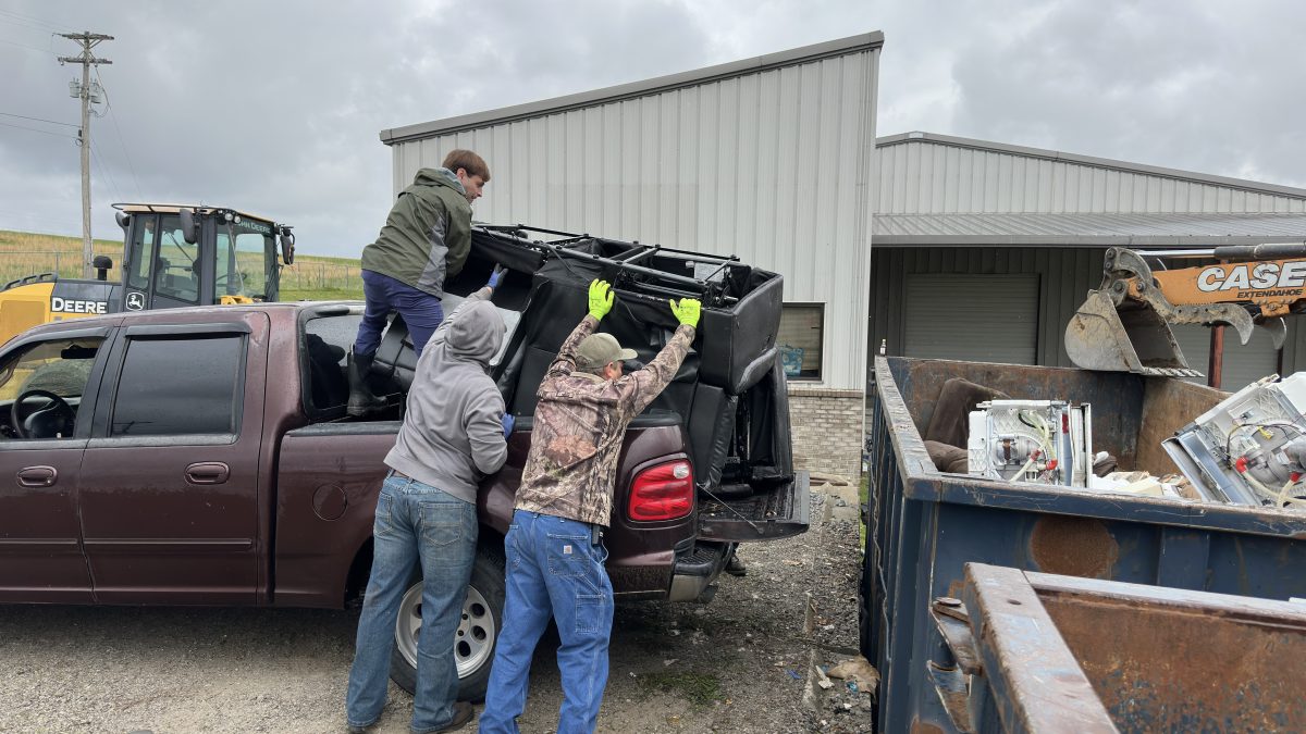 County road workers and County Judge-Executive Luke King worked to empty trucks and trailers delivering county resident’s trash into dumpsters all day last Friday and Saturday morning. By lunch on Friday they had already filled two dumpsters. The county will accept automotive tires May 1-3 at the county annex for free.