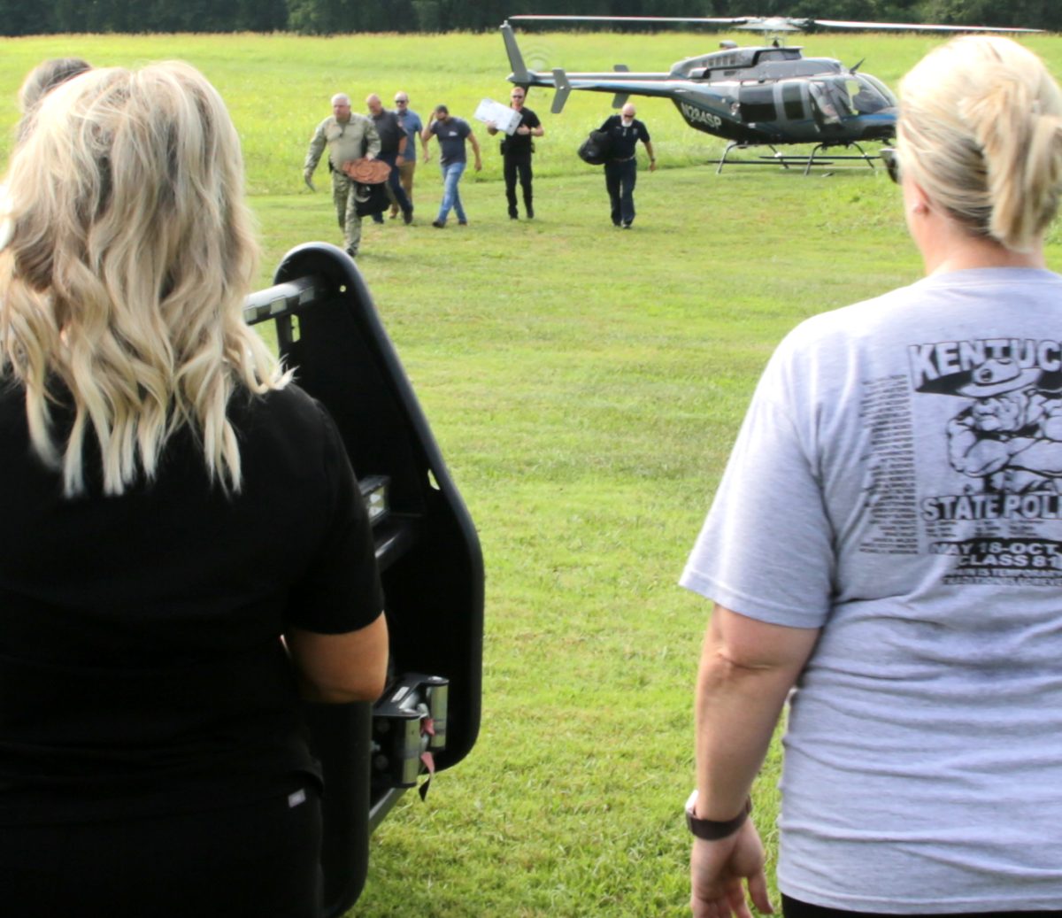 Master Trooper David Long walks from the helicopter after taking his last ride as a member of the Kentucky State Police.