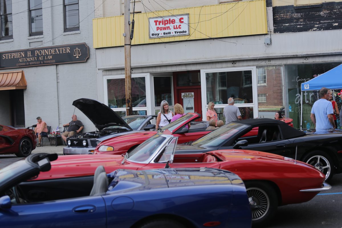 Fast cars, pretty women and men on benches. A bigger slice of American pie is hard to find. But it was around the square last Friday evening, and is returning Oct. 3, weather permitting. Organizers and participants were glad to return to First Friday activities and plan to go big just three weeks from now.